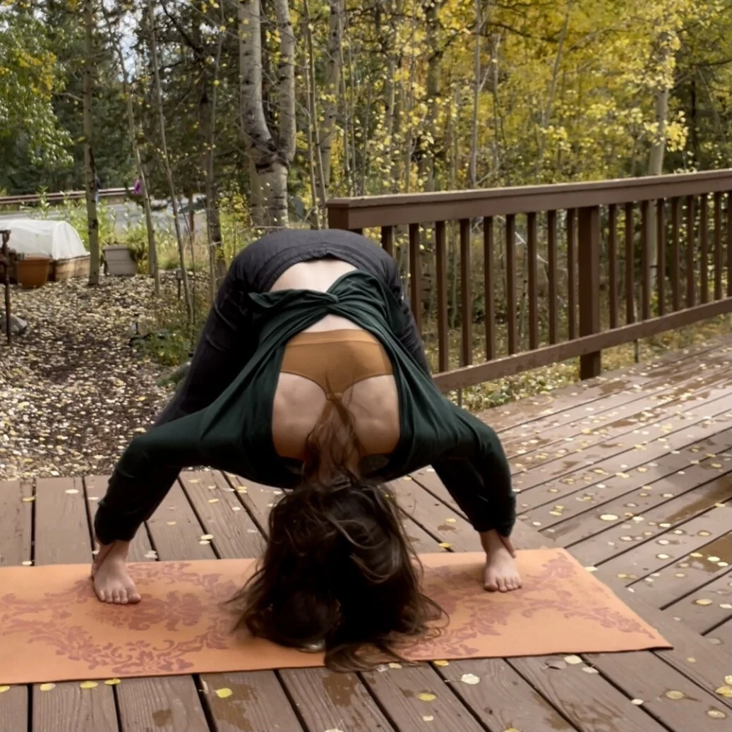 Calms the central nervous system, increases circulation, relieves lower back pain. Practice for 5 rounds of breath or more. To come out of the shape bend the knees deeply first and come up slowly to avoid a head rush.